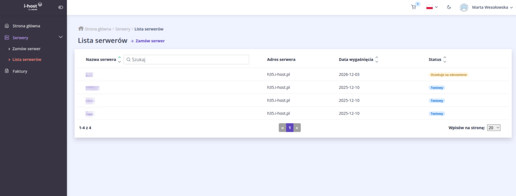 Korzystaj z panelu, aby w pełni kontrolować swoje usługi i cieszyć się bezproblemowym zarządzaniem serwerami.