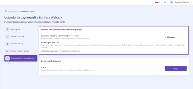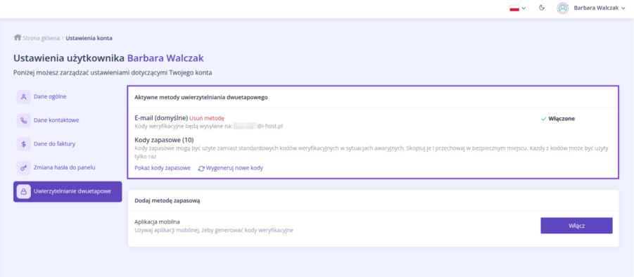 Aby zwiększyć bezpieczeństwo podczas korzystania z usług hostingowych, zaleca się stosowanie uwierzytelniania dwuskładnikowego (2FA). Dzięki tej funkcji Twoje dane są chronione nawet w przypadku kradzieży hasła.