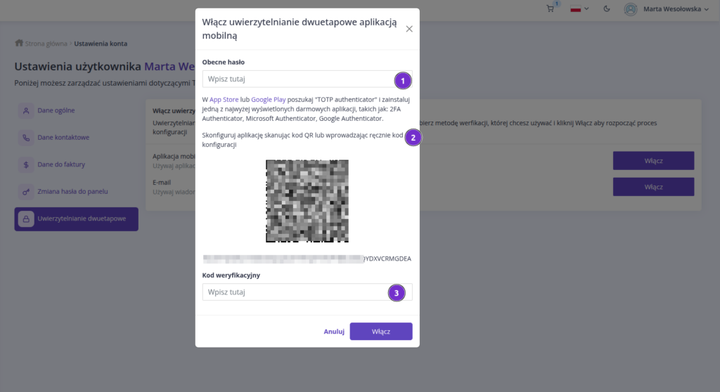 Jak aktywować weryfikację dwuskładnikową (2FA) za pomocą aplikacji? #